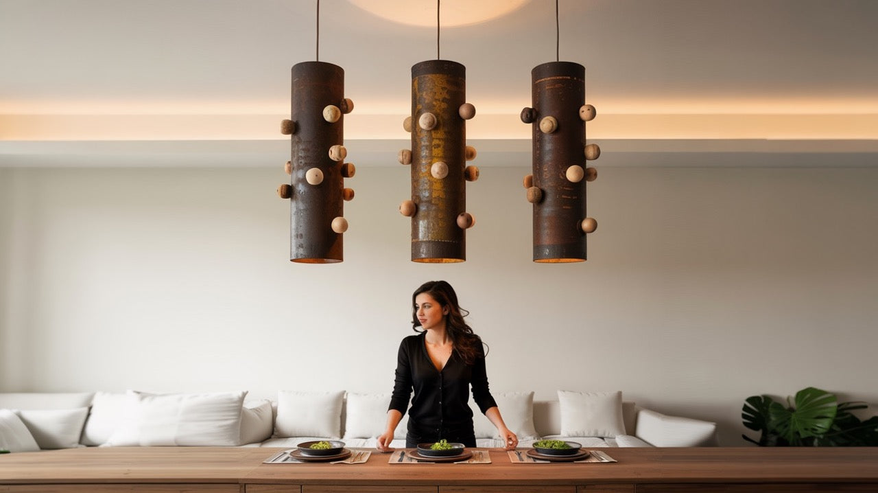 De Totem Plafondlamp is niet alleen een lichtbron, maar een ruimtelijk statement dat de taal van vergankelijkheid en rituele vormgeving in een hedendaags interieur vertaalt.